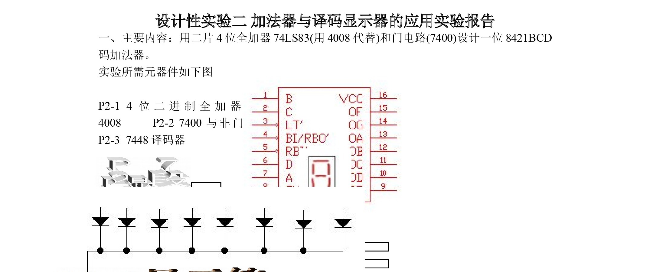 电子线路-实验二 加法器与译码显示器的应用实验报告