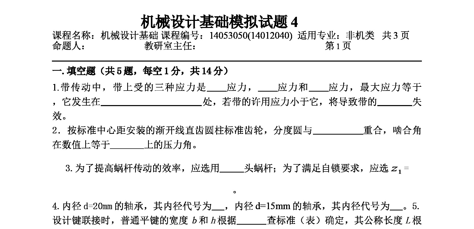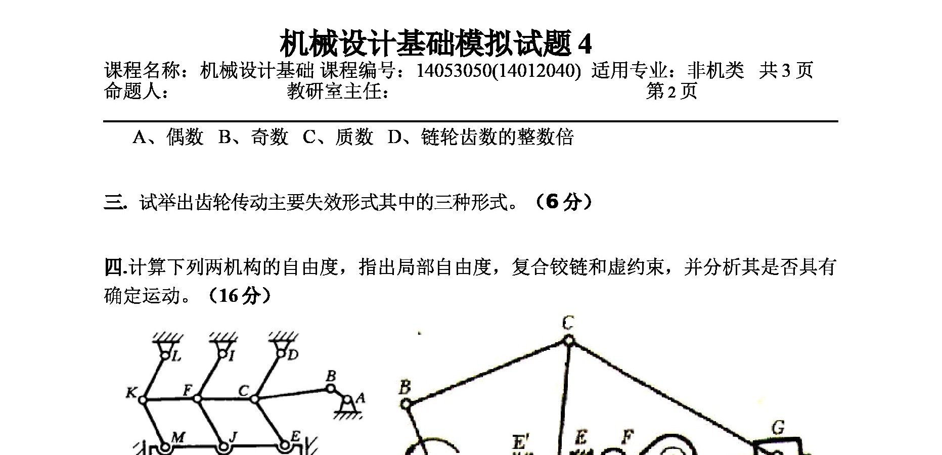 机械设计基础-机械设计基础模拟试题(4)