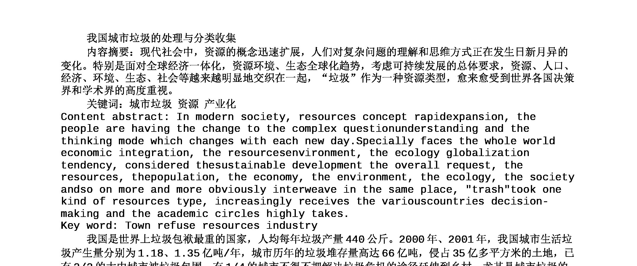 固体废物处理与处置-文档4-我国城市的垃圾处理与分类收集