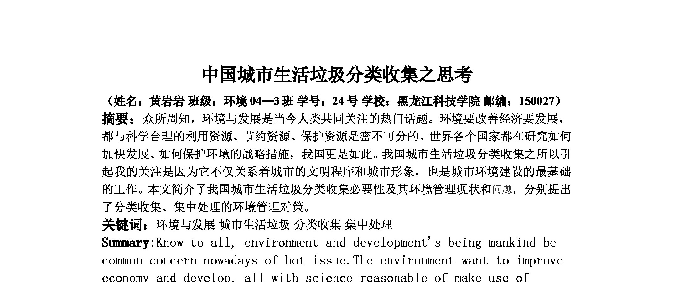 固体废物处理与处置-文档50-中国城市生活垃圾分类收集之思考