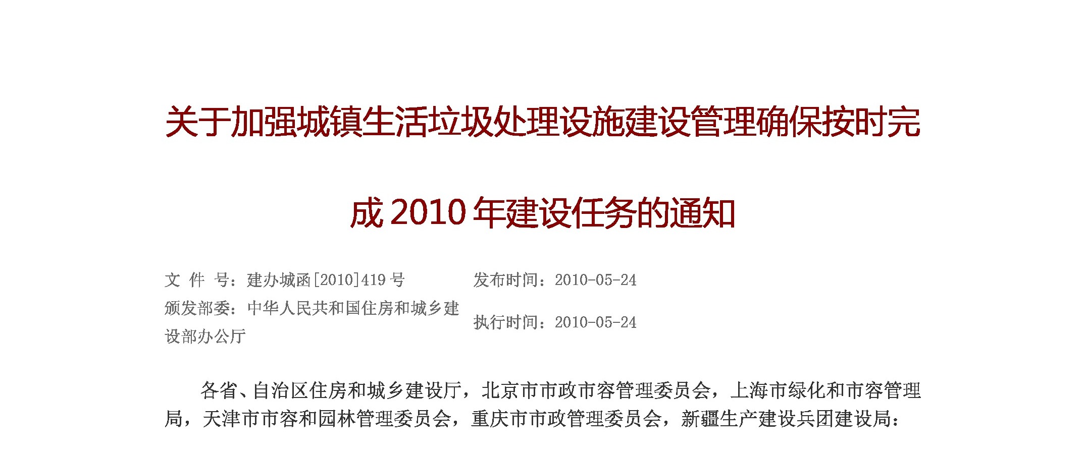 固体废物处理与处置-关于加强城镇生活垃圾处理设施建设管理确保按时完成2010年建设任务的通知