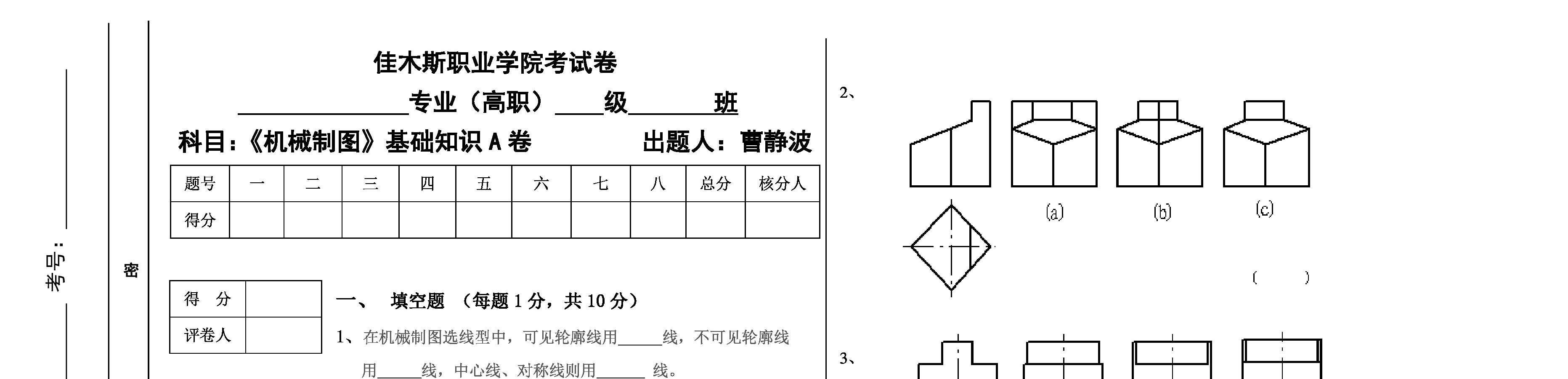 机械制图-佳木斯职业学院考试卷《机械制图》基础知识A卷1