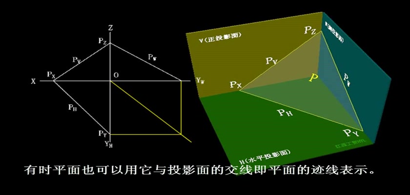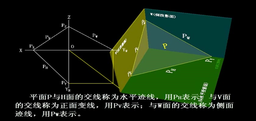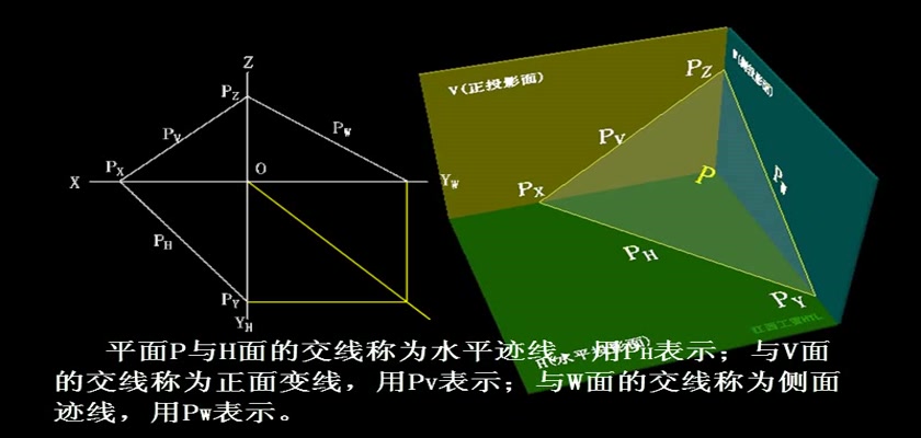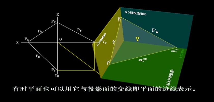 机械制图教学模型--动画--用平面的迹线表示平面