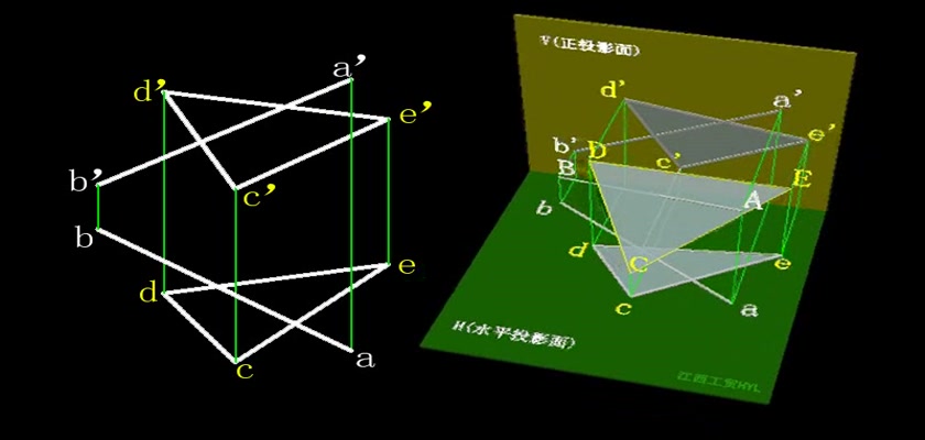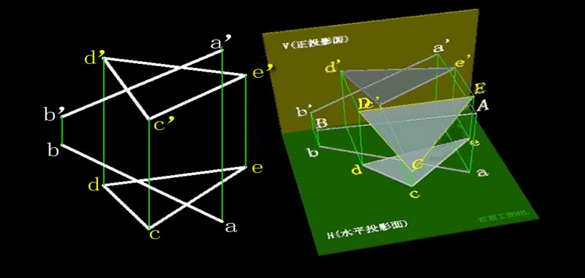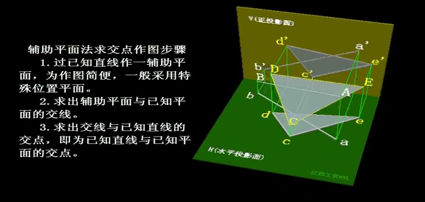 机械制图教学模型--动画--一般位置直线与平面相交 利用辅助平面求交点