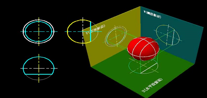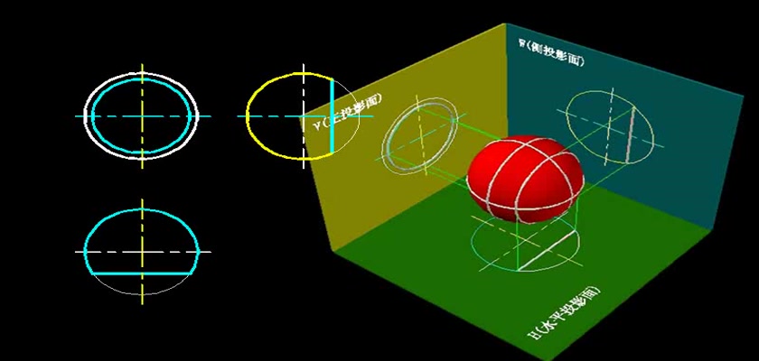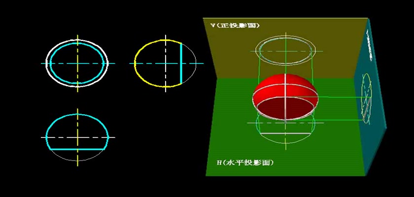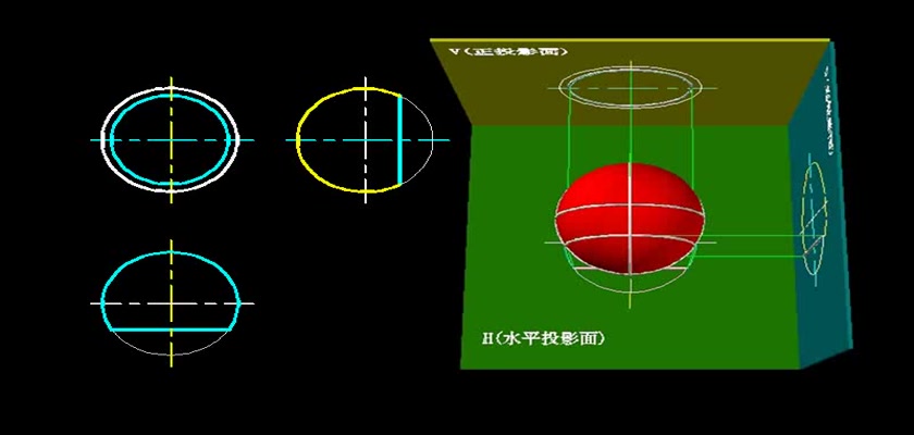 机械制图教学模型--动画--圆球表面的正面纬圆
