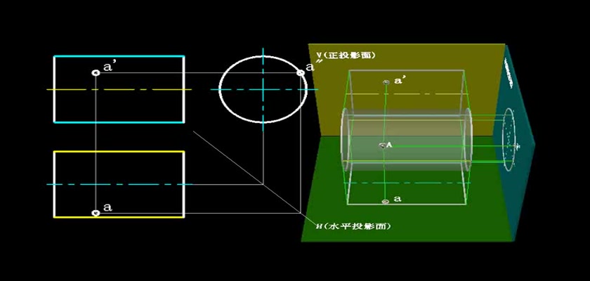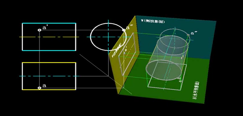 机械制图教学模型--动画--圆柱表面上取点不在轮廓线上的点用积聚性求出