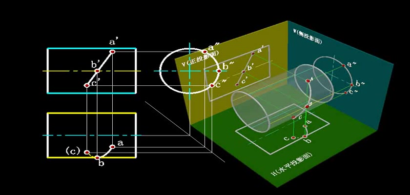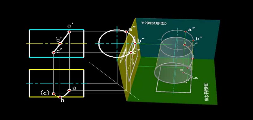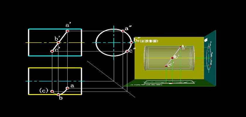 机械制图教学模型--动画--圆柱表面上取线利用积聚性求出
