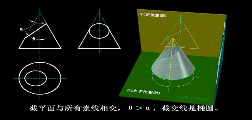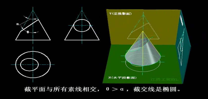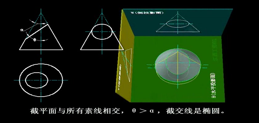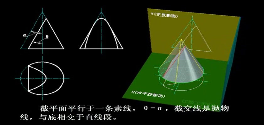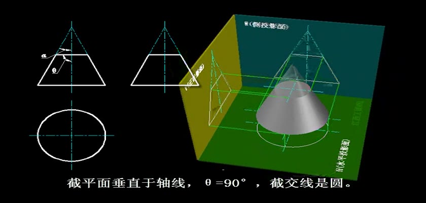 机械制图教学模型--动画--平面截切圆锥体的五种截交线