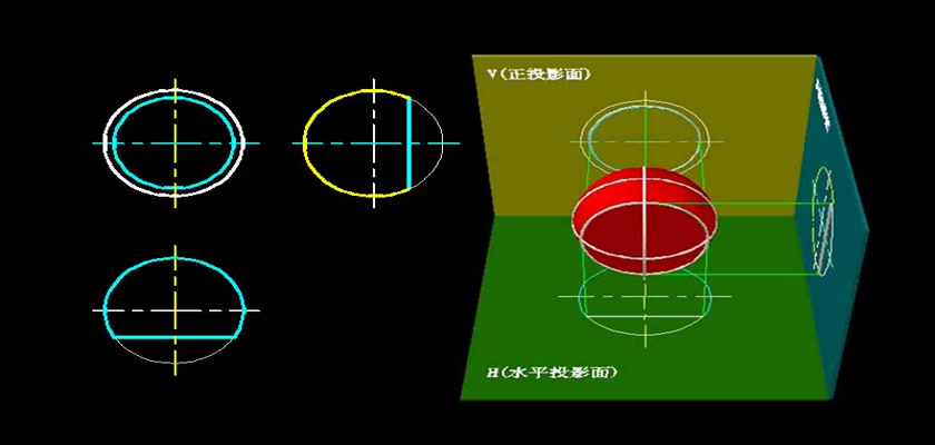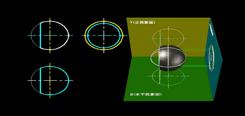 机械制图教学模型--动画--圆球表面的侧面纬...