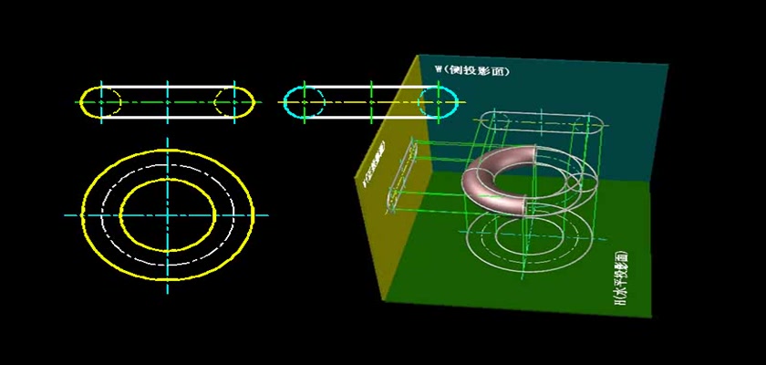 机械制图教学模型--动画--圆环的投影图
