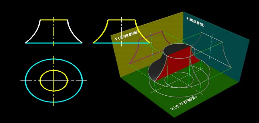 机械制图教学模型--动画--曲线回转体的投影...