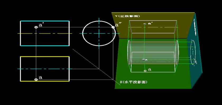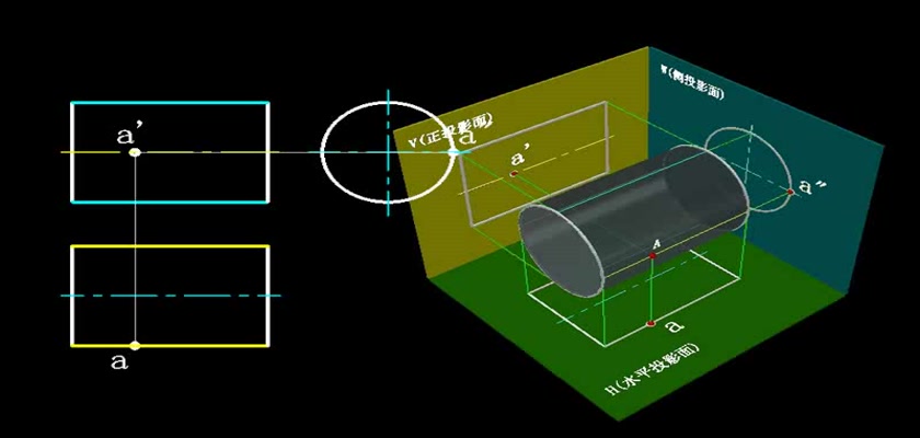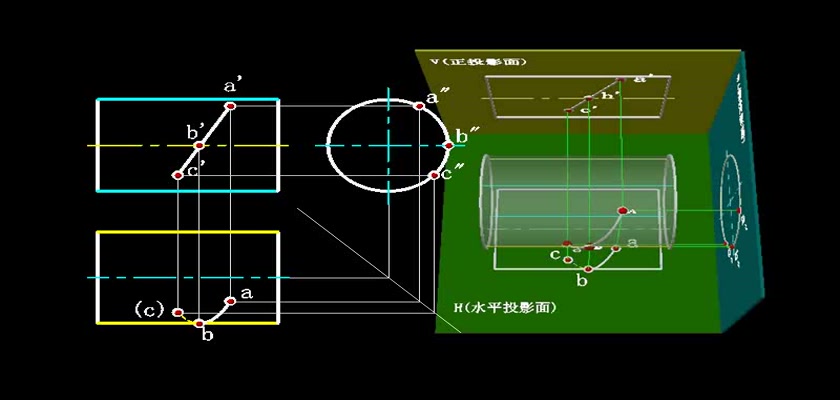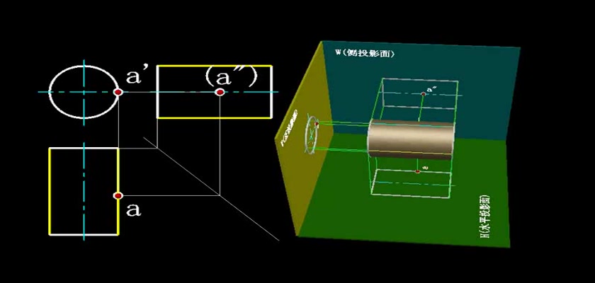 机械制图教学模型--动画--圆柱表面上取点轮...