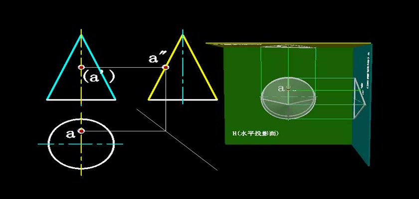 机械制图教学模型--动画--求圆锥表面上的点...