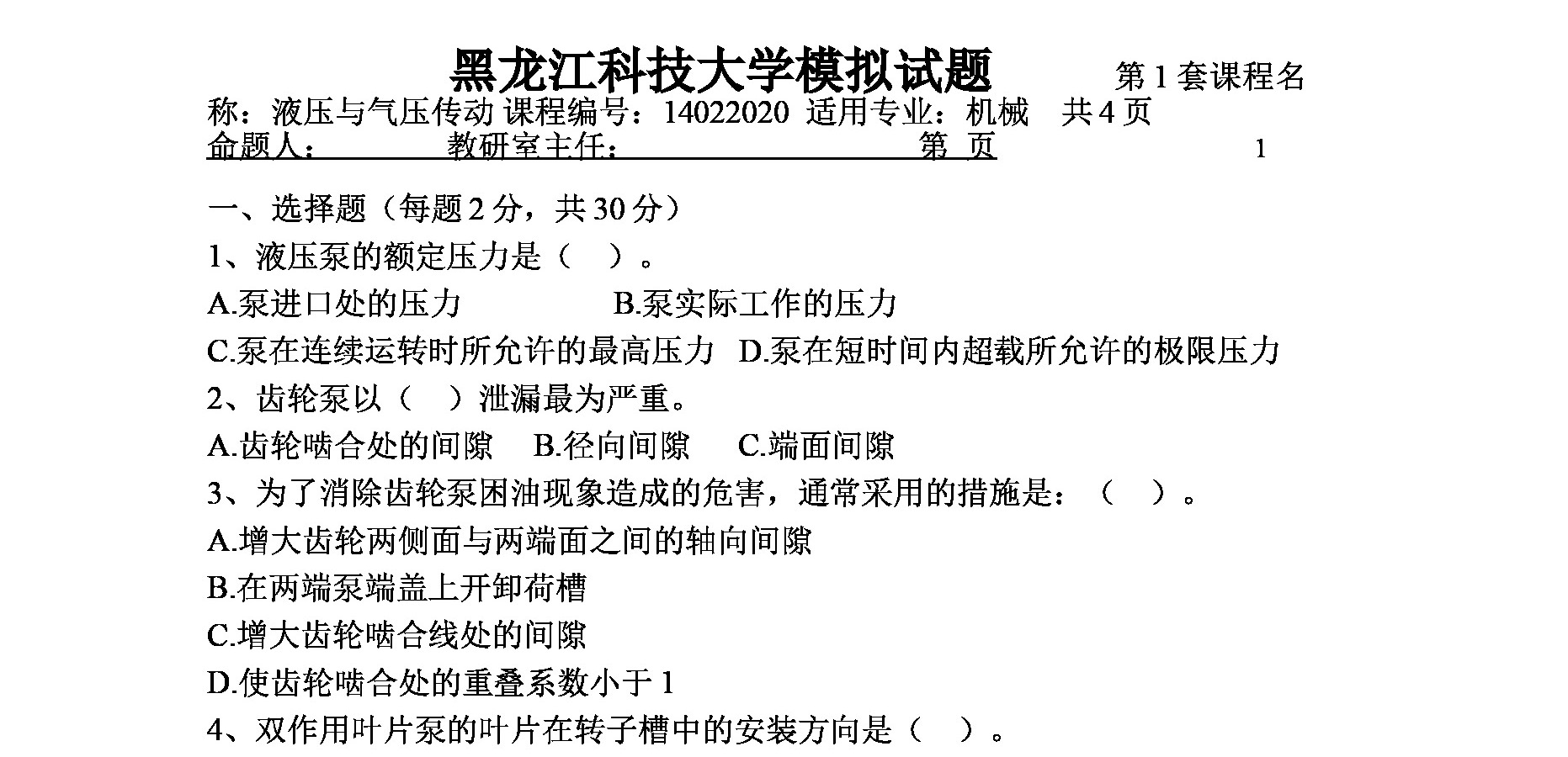 《液压与气压传动》-液压模拟题(第1套).doc