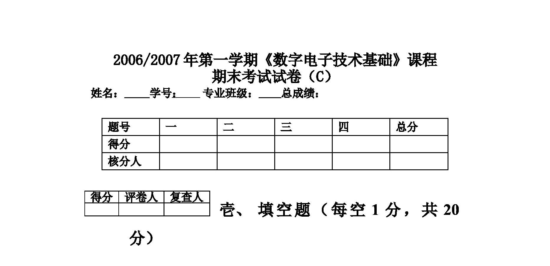 电子技术-题-2006~2007数字电子技术试卷C