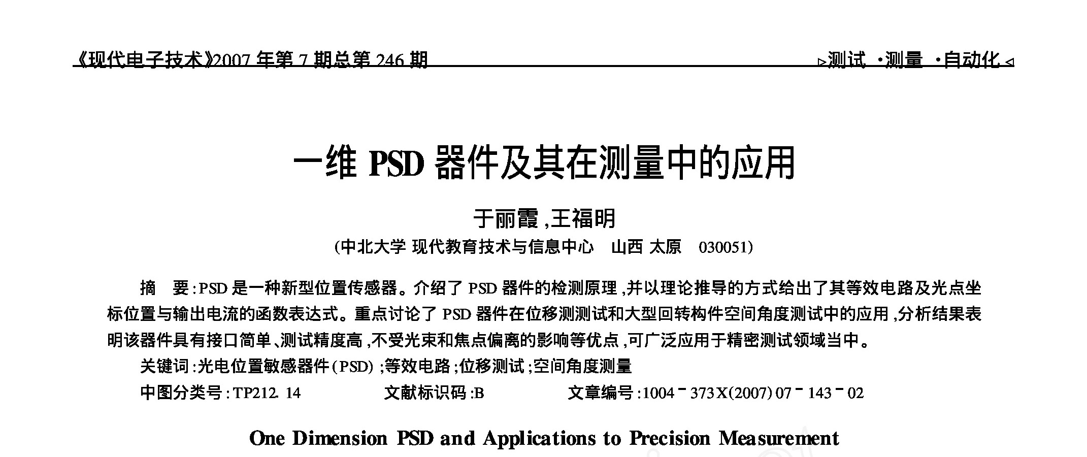 电子与通信技术-光电技术-一维PSD器件及其在测量中的应用.pdf
