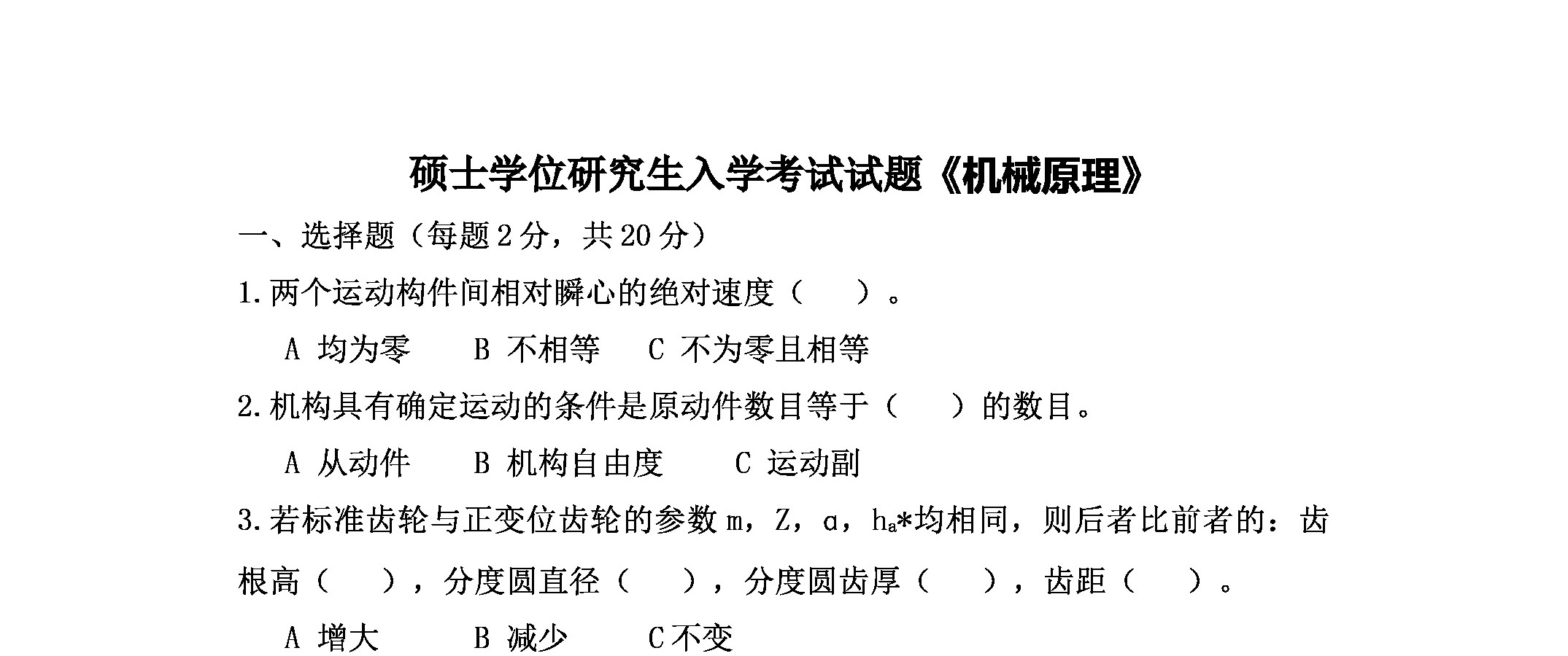 机械学-机械原理与机构学-《机械原理》网络课程-题库资源-硕士学位研究生入学考试试题《机械原理》4