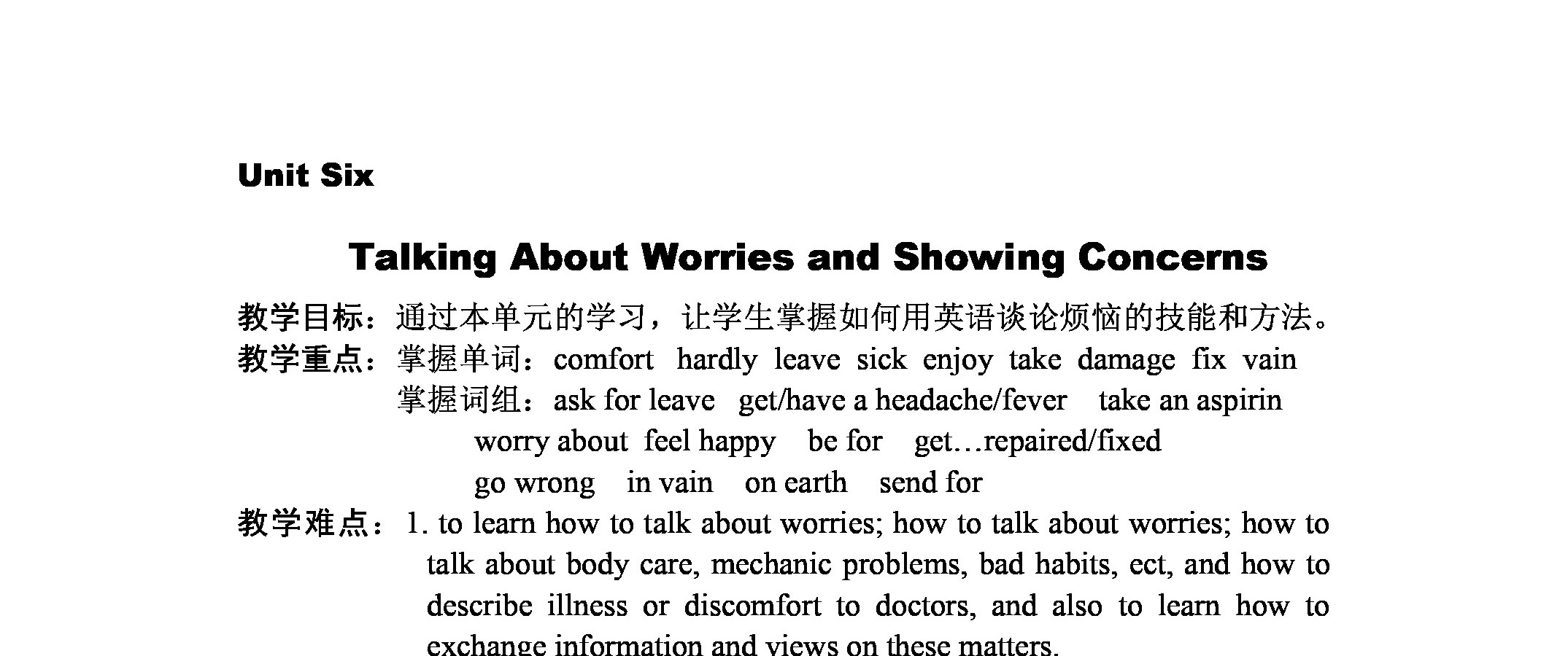 英语-Unit Six Talking About Worries and Showing Concerns