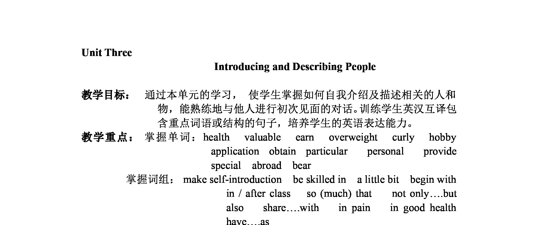 英语-Unit Three Introducing and Describing People