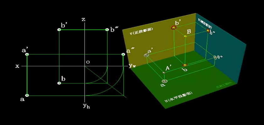 机械制图教学模型--动画--直线的投影图