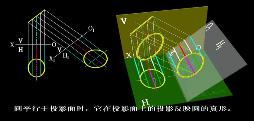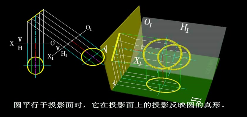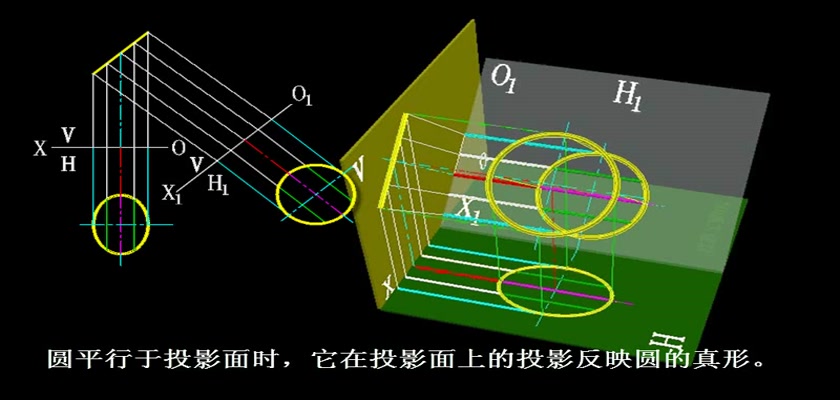 机械制图教学模型--动画--圆的投影变换