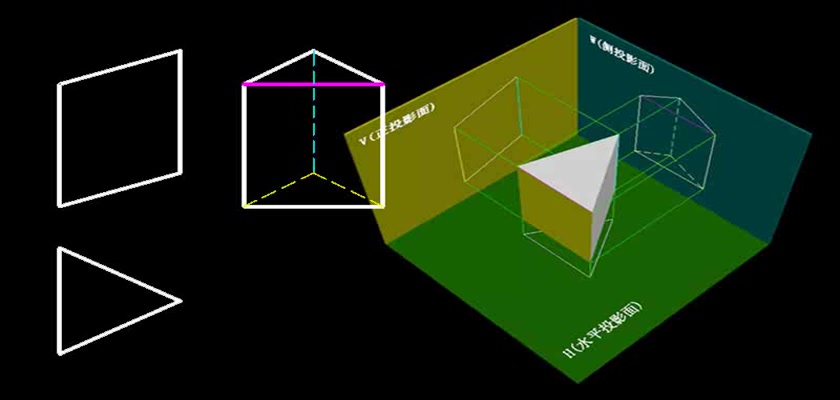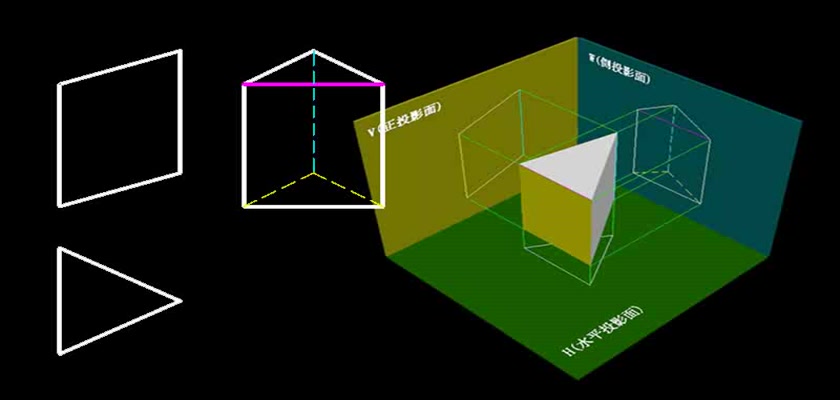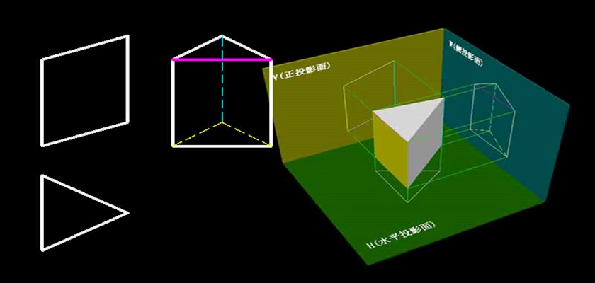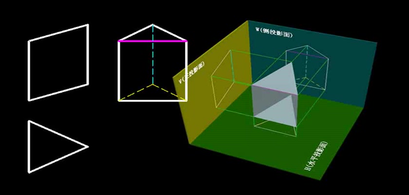 机械制图教学模型--动画--三棱柱的投影图
