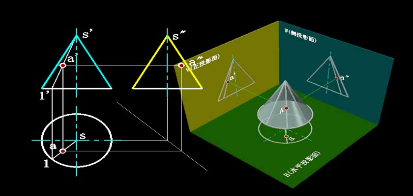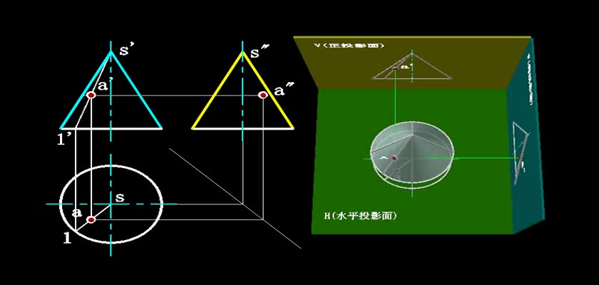 机械制图教学模型--动画--圆锥表面上取点素线法