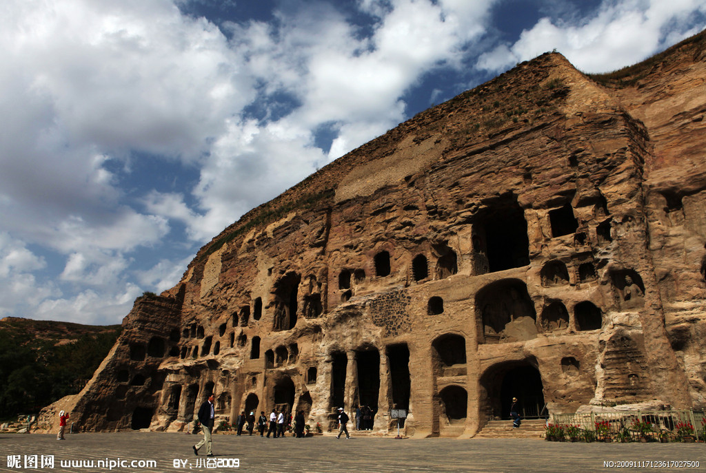 中西文化比较-中国文化演变,云冈石窟外景1
