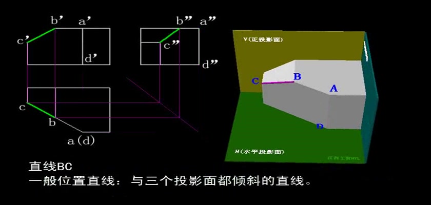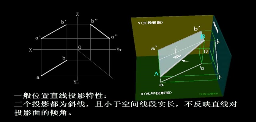 机械制图教学模型--动画--一般位置直线的投...
