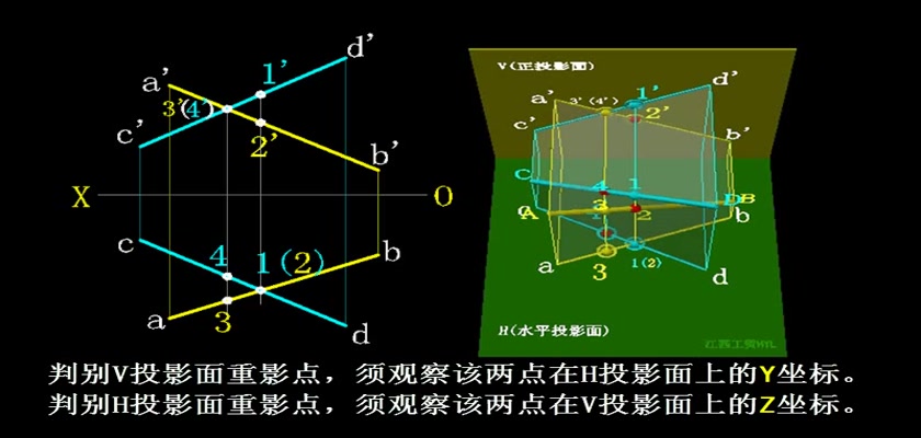 机械制图教学模型--动画--两直线相交叉及其...